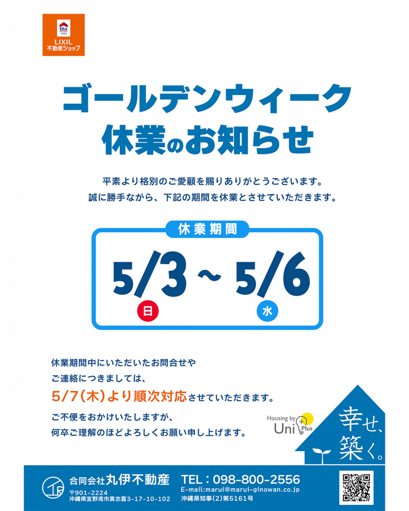 ゴールデンウイーク休業のお知らせ